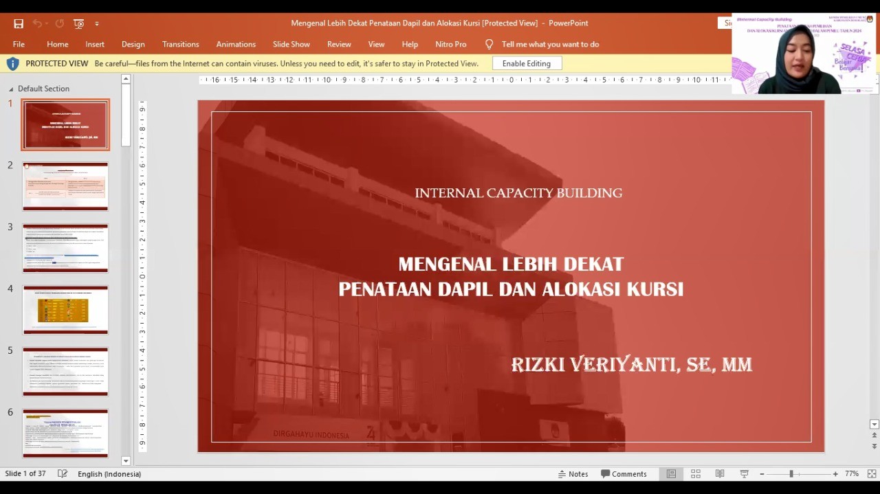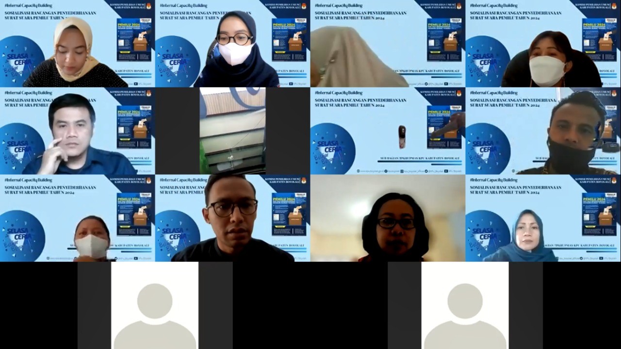 Kegiatan webinar dimoderatori Kasubbag Program dan Data KPU Kabupaten Boyolali, F. Yeni Susanti dengan Narasumber Divisi Data dan Informasi KPU Kabupaten Boyolali, Pardiman, Divisi Data dan Informasi KPU Kota Waringin Barat, Pudji Suharyanti dan Divisi Data dan Informasi KPU Kota Surakarta, Kajad Pamuji Joko Waskito.