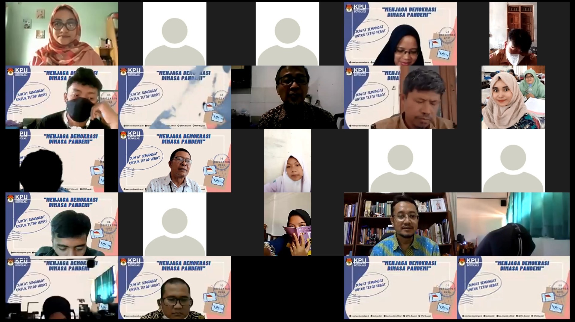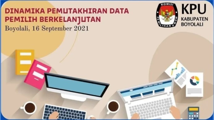 kpu boyolali - KPU Kabupaten Boyolali mengadakan Webinar Dinamika Pemutakhiran Pemilih Berkelanjutan pada hari Kamis, 16 September 2021. Kegiatan dilaksanakan secara daring melalui zoom meeting dengan peserta masyarakat umum. Kegiatan dibuka langsung oleh Ketua KPU Kabupaten Boyolali, Ali Fahrudin, disampaikan bahwa kegiatan ini dilakukan sebagai upaya KPU dalam melihat kondisi dan menggali hal-hal yang berkaitan dengan Data Pemilih Berkelanjutan. Anggota KPU Provinsi Jawa Tengah, Paulus Widiyantoro memberikan sambutan, disampaikan bahwa Data Pemilih Berkelanjutan merupakan upaya KPU dalam mengelola Data Pemilih secara komprehensif dan berkelanjutan.