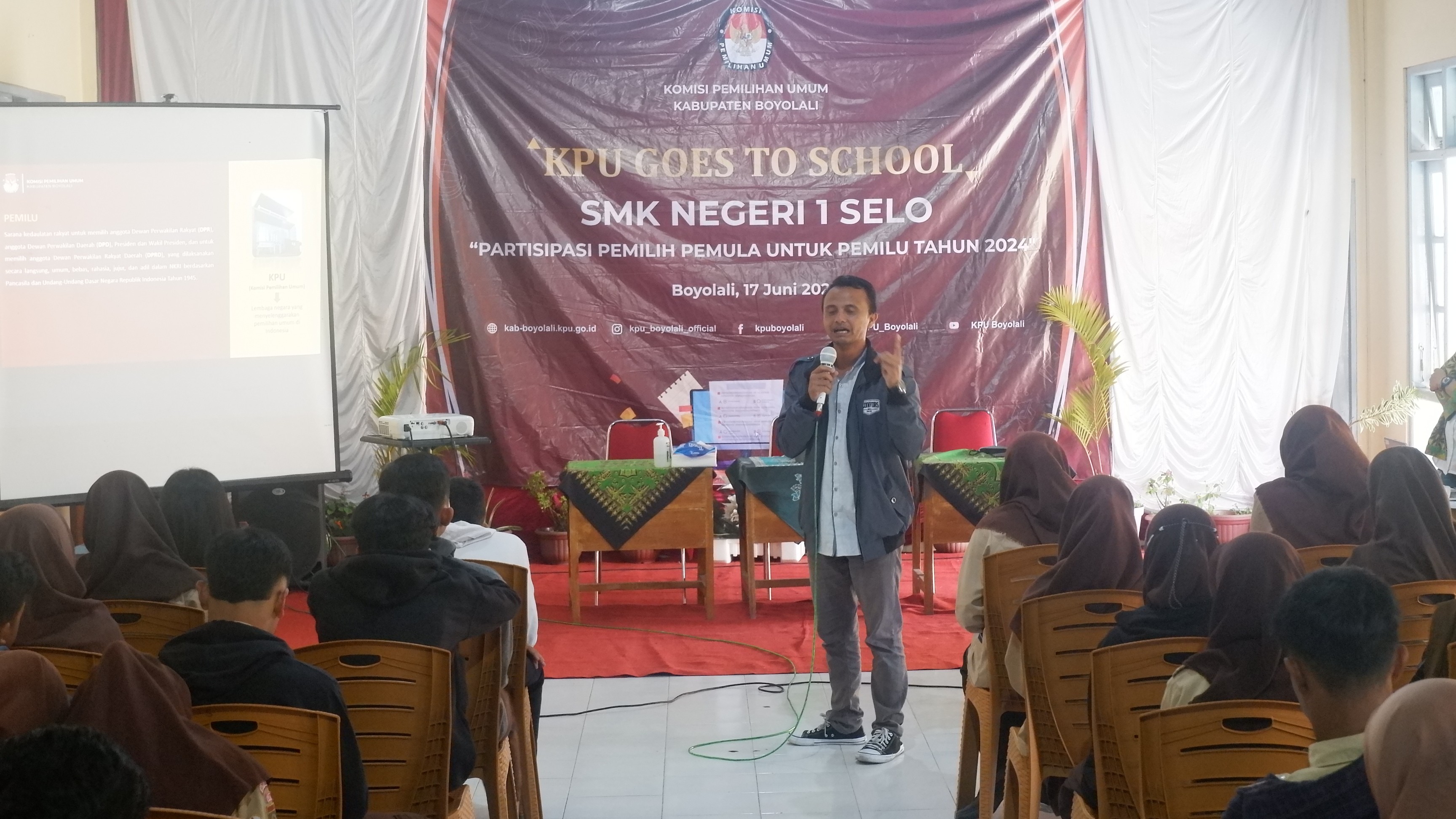 Rapat Koordinasi Pemutakhiran Daftar Pemilih Berkelanjutan setelah selesai rapat koordinasi juga dilangsungkan Sosialisasi Aplikasi Lindungi hakmu oleh Divisi Perencanaan Data dan Informasi, bahwa aplikasi lindungi hakmu itu bermanfaat antara lain: 1) untuk mengetahui pemilih sudah terdaftar di TPS mana, 2) mengetahui rakapitulasi daftar pemilih dari tingkat Nasional, Provinsi, Kabupaten/Kota, Kecamatan, Desa/Kelurahan bahkan sampai di TPS, 3) untuk melaporkan jika ada pemilih yang Tidak Memenuhi Syarat (TMS), dan 4) mendaftar menjadi Pemilih Baru. Dengan adanya sosialisasi Aplikasi Lindungi Hakmu Mobile ini, KPU Kabupaten Boyolali berharap masyarakat Boyolai, Partai Politik, dan dinas/instansi yang hadir dapat menggunakan aplikasi tersebut.